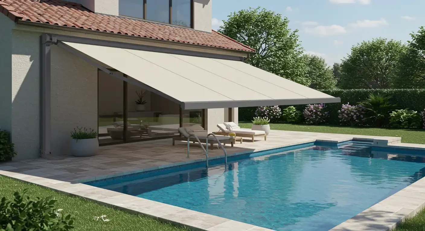 Harmful rays cause 90% of skin cancers. Awnings block 99% UV, safeguarding family during pool days. Unlike roller shades, they allow breeze, preventing stuffiness.